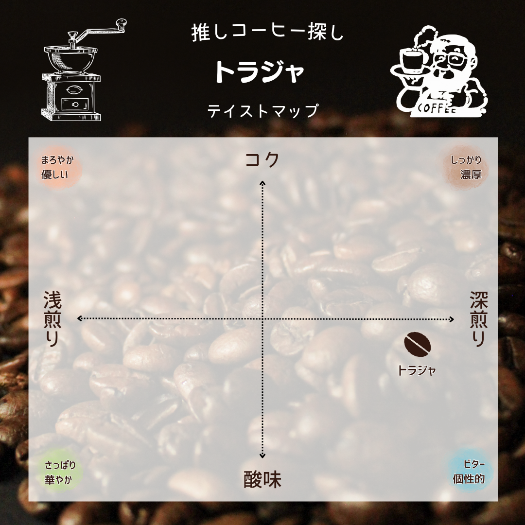 トラジャ 2026.03.302026.04.06 ¥1,000 (税込) 豆の状態 選択してください豆挽 容量 選択してください100g200g300g400g500gクリア トラジャ個 お買い物カゴに追加 商品一覧に戻るカートを確認 商品コード: 該当なし カテゴリー: コーヒー豆 説明 追加情報 説明 インドネシア・スラウェシ島産。トラジャ=『山の人』、の意味。かつては『幻のコーヒー』とも 言われた希少品で、ビロードのようななめらかなコクと後味があります。 追加情報 豆の状態 豆, 挽 容量 100g, 200g, 300g, 400g, 500g 関連商品 珈巣多夢ブレンド ¥800 (税込) オプションを選択 この商品には複数のバリエーションがあります。 オプションは商品ページから選択できます ブラジル セラード 手摘み完熟豆 ¥950 (税込) オプションを選択 この商品には複数のバリエーションがあります。 オプションは商品ページから選択できます 直火焼きブレンド ¥800 (税込) オプションを選択 この商品には複数のバリエーションがあります。 オプションは商品ページから選択できます エメラルドマウンテン ¥1,350 (税込) オプションを選択 この商品には複数のバリエーションがあります。 オプションは商品ページから選択できます